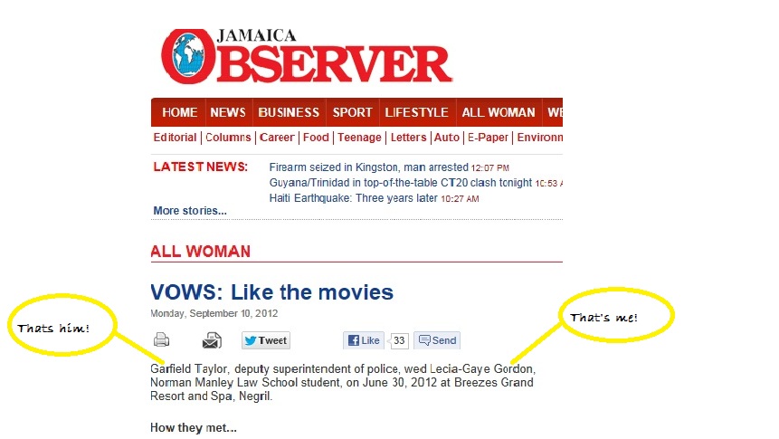 Leave it to Jamaica's favourite and highly respected Scribe to bring our wedding to life! (See the Gleaner Feature)